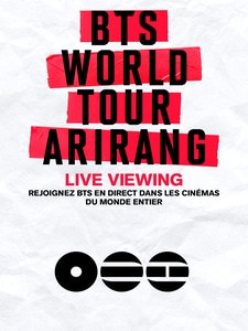 Infos, trailers & details Parcourant 34 villes à travers le monde pour un total de 82 concerts, la tournée débute par des spectacles historiques à Goyang, en Corée du Sud, et à Tokyo, au Japon, établissant un nouveau record du plus grand nombre de dates de tournée pour un groupe de K-pop. Intitulée ARIRANG, cette tournée accompagne le cinquième album studio de BTS, qui reflète l’identité du groupe à travers une introspection sincère et des émotions universelles telles que la nostalgie et l’amour profond, portées par une musique qui les définit selon leurs propres termes.
