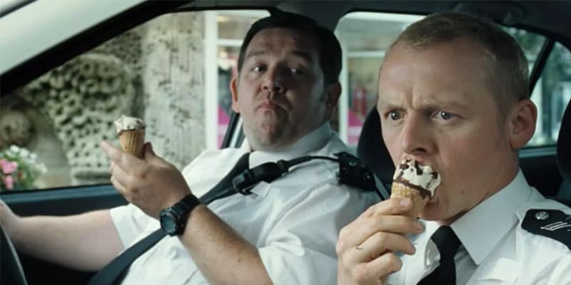 C’est grâce au légendaire trio anglais composé d’Edgar Wright, réalisateur et de ses deux comédiens Simon Pegg (également auteur) et Nick Frost que la Trilogie Cornetto a vu le jour. Initiée au cinéma par le brillant Shaun of the Dead, l’aventure continue quelques années plus tard avec Hot Fuzz ! Parodie assumée des films d’action à la Michael Bay, les hommages pleuvent dans ce bijou d’action et d’humour purement british…